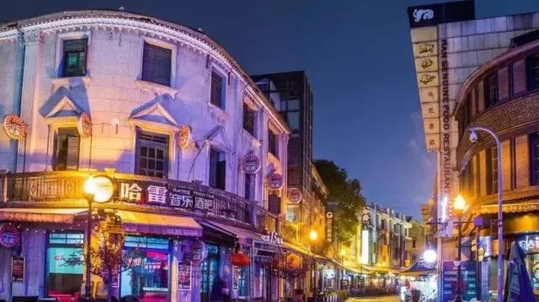 如果想要表現出近代的古鎮古街,就來些白漆小洋樓,黃串跑馬燈,再來點大招牌,活脱脱一九十年代的上海灘。此類型的典型仿古街有長沙黃興路、蘇州新區珠江路、南昌景象風情。