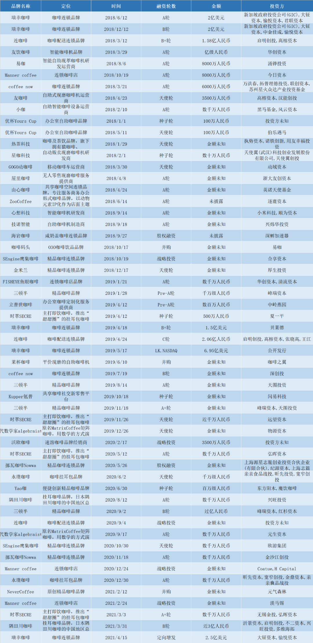 從企查查提供的 “近3年咖啡行業融資情況統計”來看,2020年瑞幸式微之後,被瑞幸烘熱的咖啡賽道,開始被資本關注。甚至,一度在瑞幸咖啡的猛攻下,已經潰敗的連咖啡,也在2020年9月,再次獲得一筆續命的戰略投資。