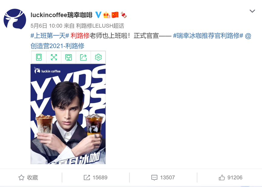從數據來看,沒有大量做營銷投入的瑞幸,其推出的新爆品生椰系列,在創造營參賽選手利路修“YYDS”(永遠滴神)的出圈營銷下,單月銷量超1000萬杯,刷新了瑞幸新品銷量記錄。