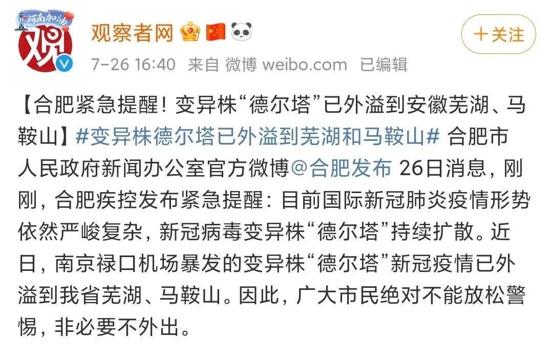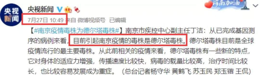 再反觀南京這邊,此次新冠的病毒序列結果也是27號才對外公佈,正是印度的變異毒株德爾塔病毒。