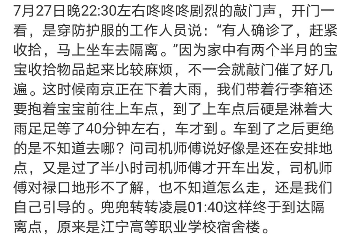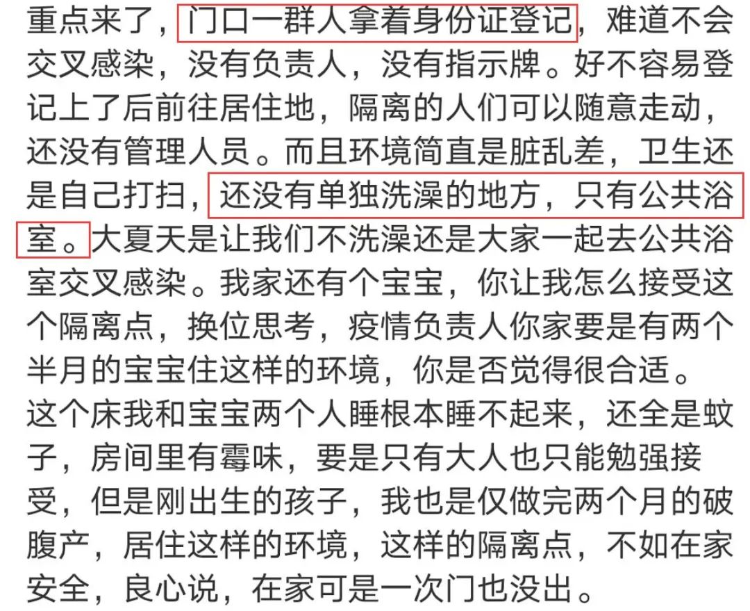 一個帶着2個多月寶寶的媽媽表示,隔離人員是用公交車集中轉送的,集中隔離點的環境髒亂差,而且炎熱的夏天,他們要用公共浴池,那這樣是去隔絕病毒還是去接觸病毒了呢。
