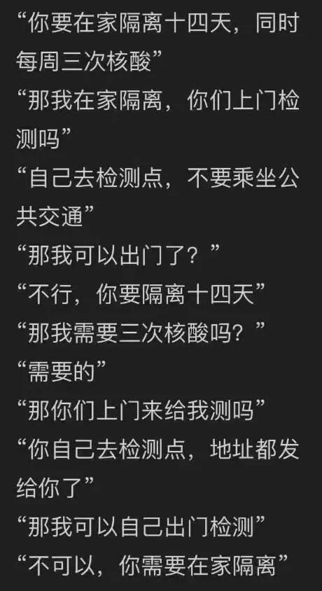 讓黃碼人員居家隔離,又讓出去做檢測,矛盾的讓人發笑。
