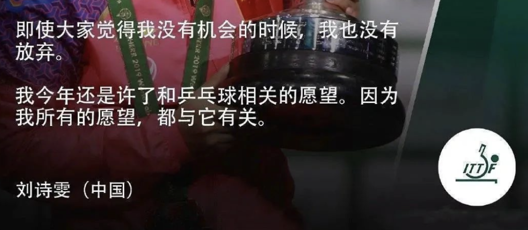 「2017年,我獲得亞錦賽冠軍,劉詩雯是唯一一個向我説恭喜的中國女乒運動員,也一直是我的精神偶像。」