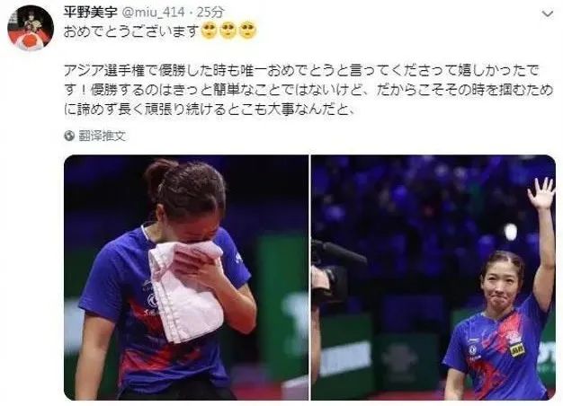 在一次國際賽上,日本名將平野美宇接受採訪時説: