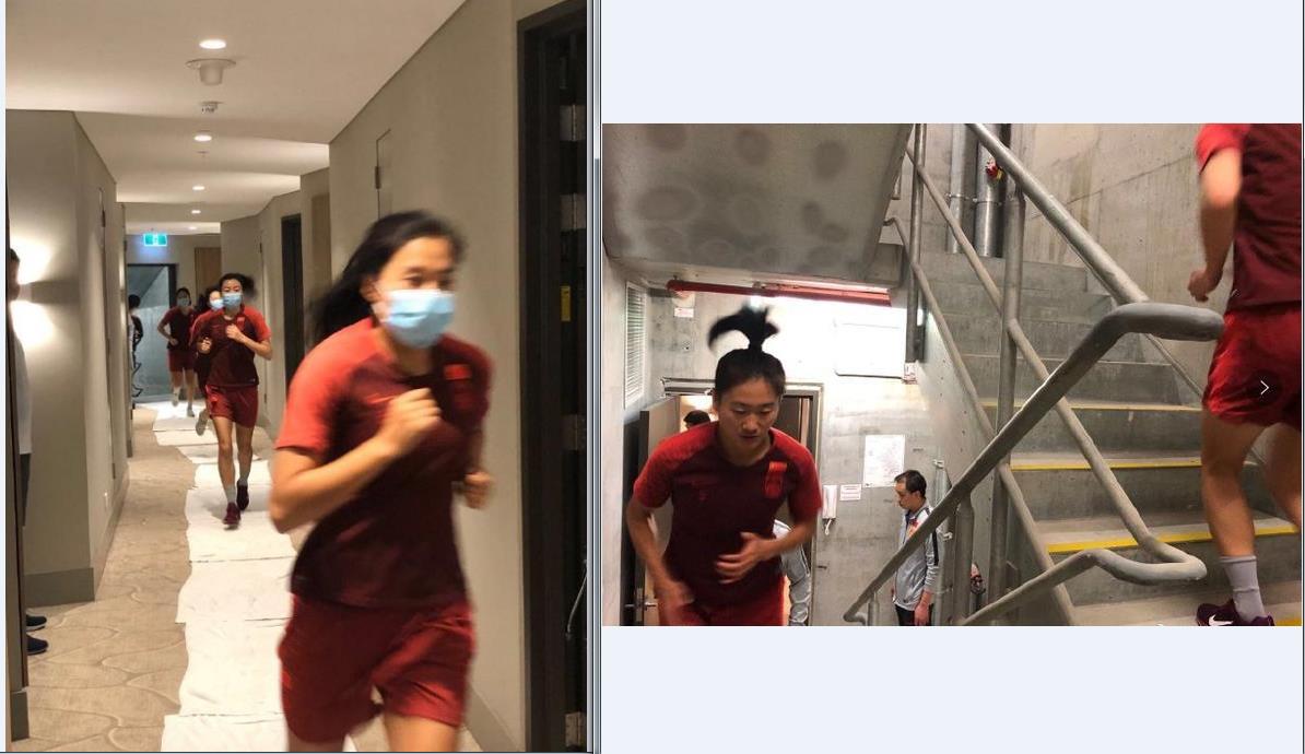 下圖是中國女足奧運代表隊在悉尼隔離住處的訓練圖片,配以的標題是“為什麼中國女足行,看看圖片就知道了”………………