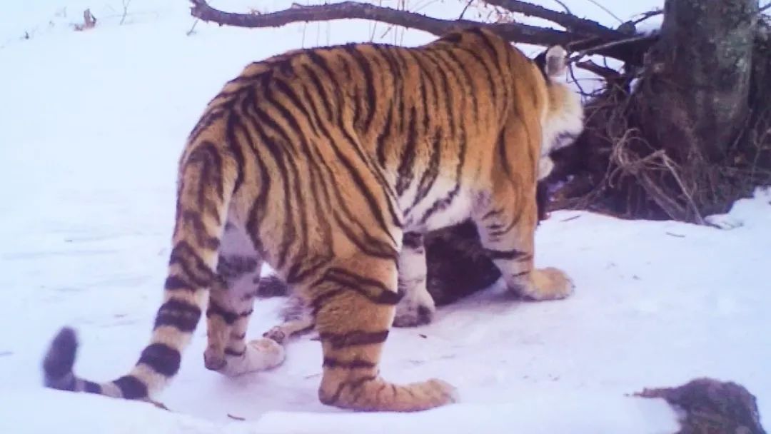 一隻東北虎在濱海邊疆區被拍攝到襲擊了一隻狗©Amur Tiger Center