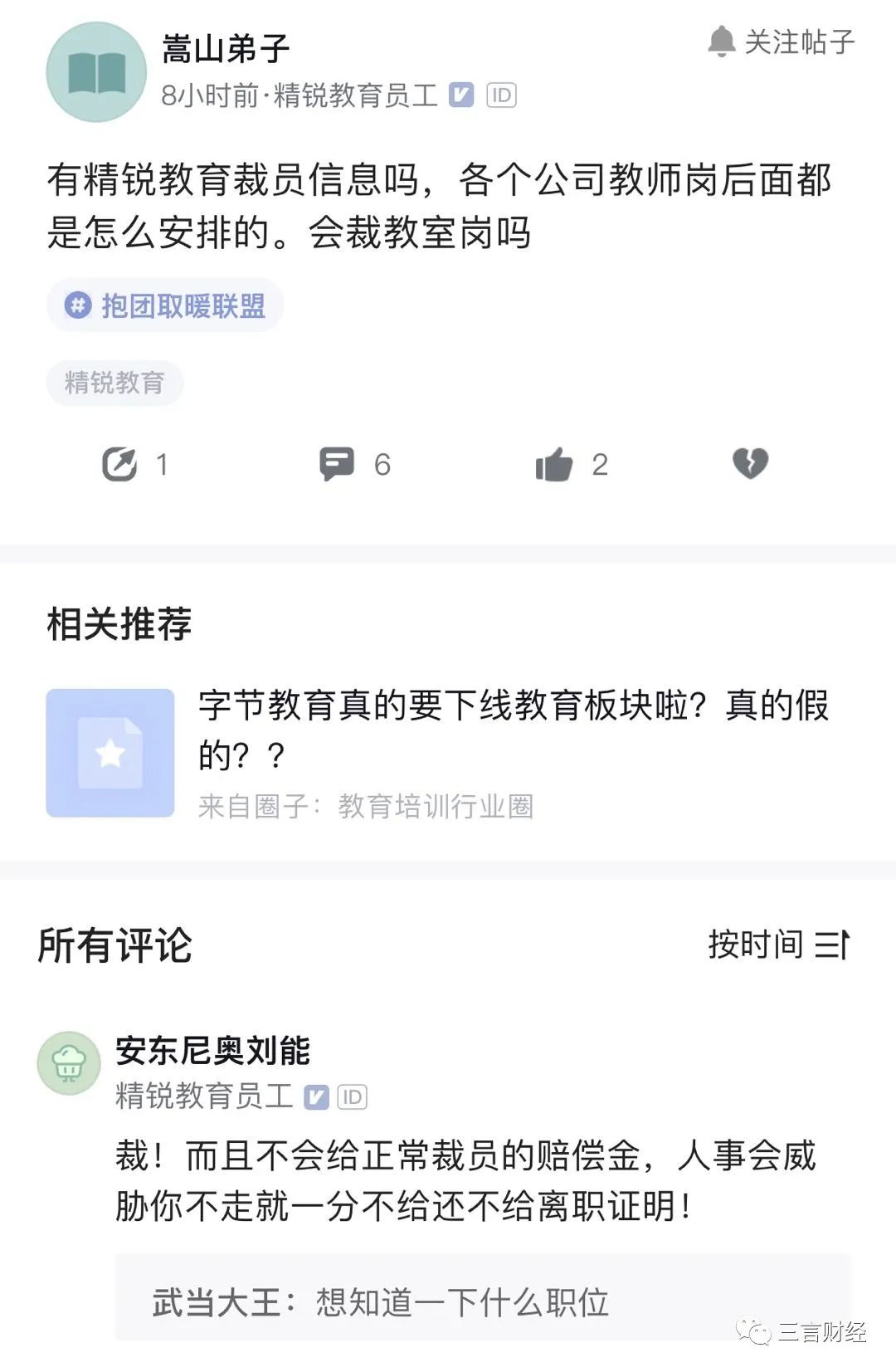 另一家精鋭教育也被指裁員不給賠償金,有員工稱人事還會威脅如果不走就不給離職證明。