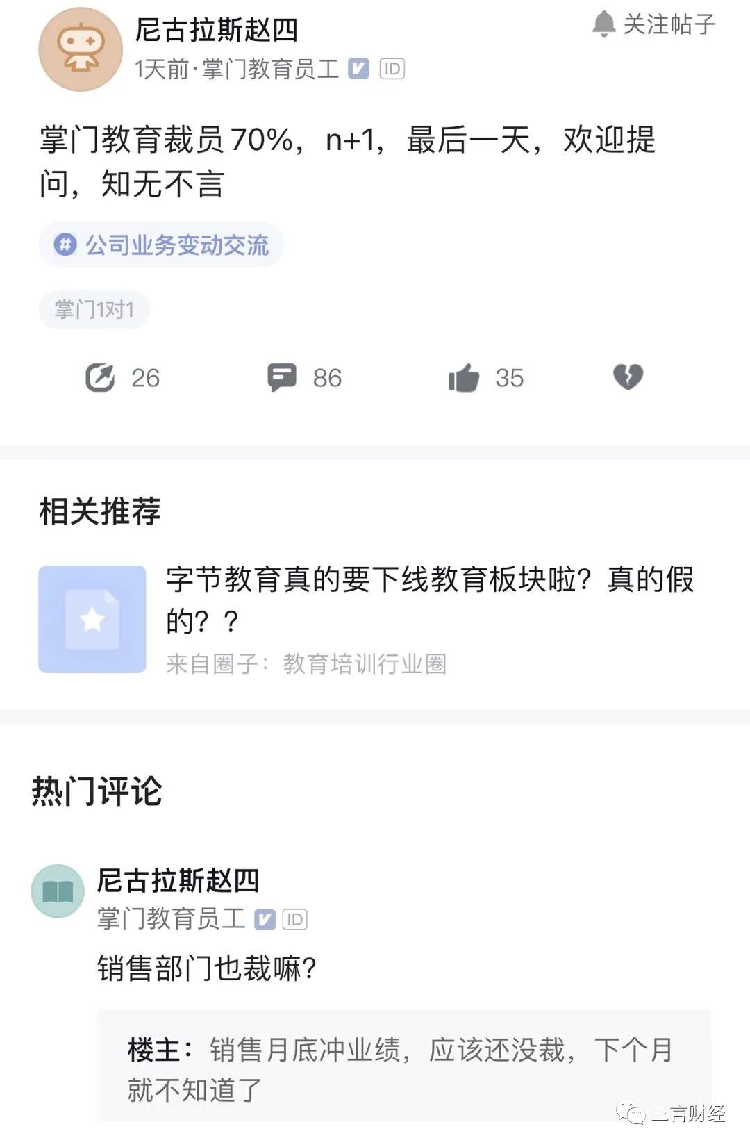 掌門教育員工稱公司裁員70%,補償是N+1。