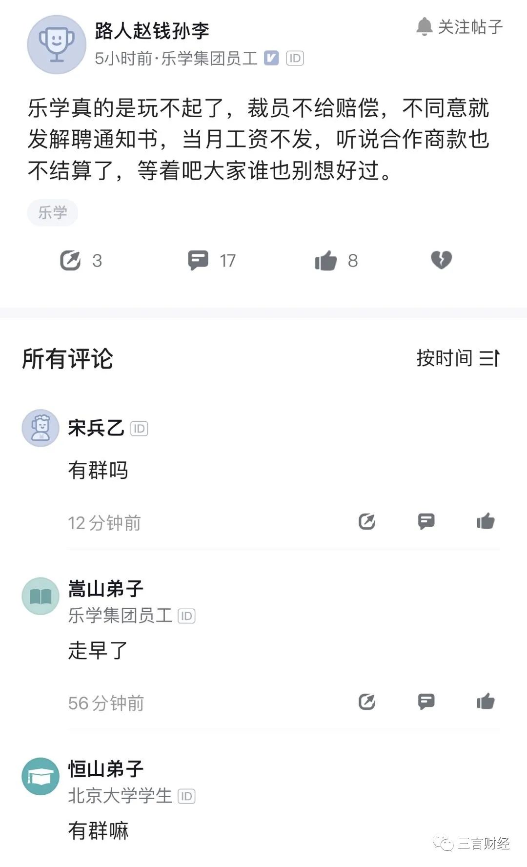 被指不給賠償不止一家。有樂學集團員工稱,公司裁員不給賠償,不同意就發解聘通知書,當月工資也沒發。