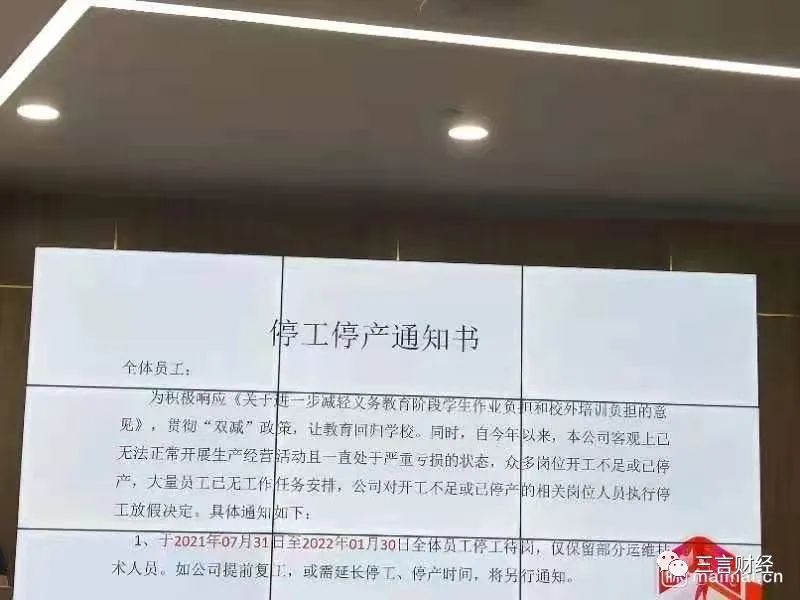 員工貼出的內部通知顯示,停工待崗時間從2021年7月31日至2022年1月30日。