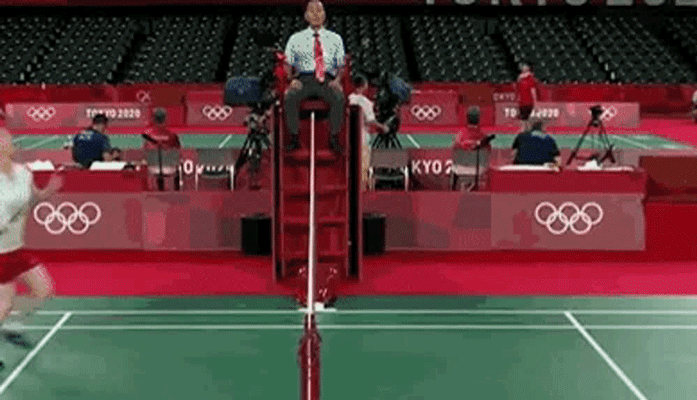 看這個慢動作截圖,此時球已經飛到日本半場,羽毛球又不像網球乒乓球會出現迴旋把球旋迴來的情況,所以這球的擊球點應該就是在日本隊一方,應該是沒問題的不算過網擊球。