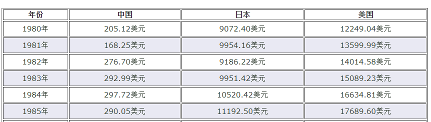 當時的中國呢?剛剛改革開放,外貿競爭力基本沒有,人均GDP更只有日本的1/35、美國的1/56。