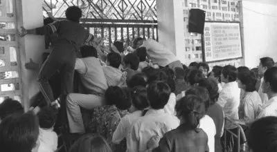 1994年4月14日,印尼棉蘭,工人為加薪遊行示威,遭到軍警武力鎮壓,結果矛盾最終轉移到了華人頭上,演變成了針對華人店鋪打砸搶燒的排華風暴。