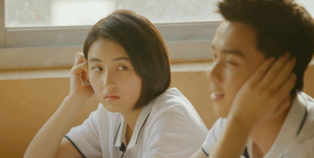 女孩看男孩的眼神,含情,但她在不斷地“收”,剋制自己。