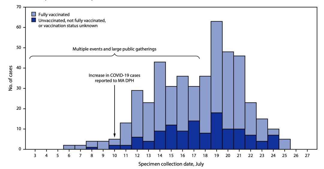 [1].Outbreak of SARS-CoV-2 Infections, Including COVID-19 Vaccine Breakthrough Infections, Associated with Large Public Gatherings — Barnstable County, Massachusetts, July 2021U.S. Department of Health and Human Services Centers for Disease Control and Prevention