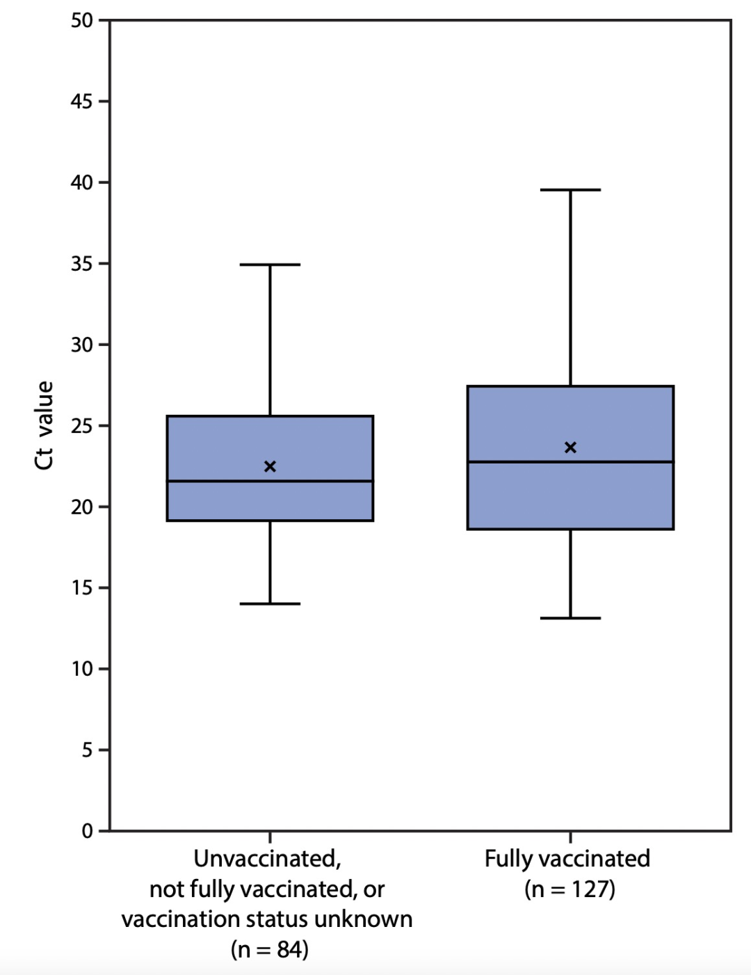 對127名完成接種的感染者和84名未完成接種、未接種(至少65人)和情況不明的感染者檢測發現,雙方的病毒載量無明顯差異。