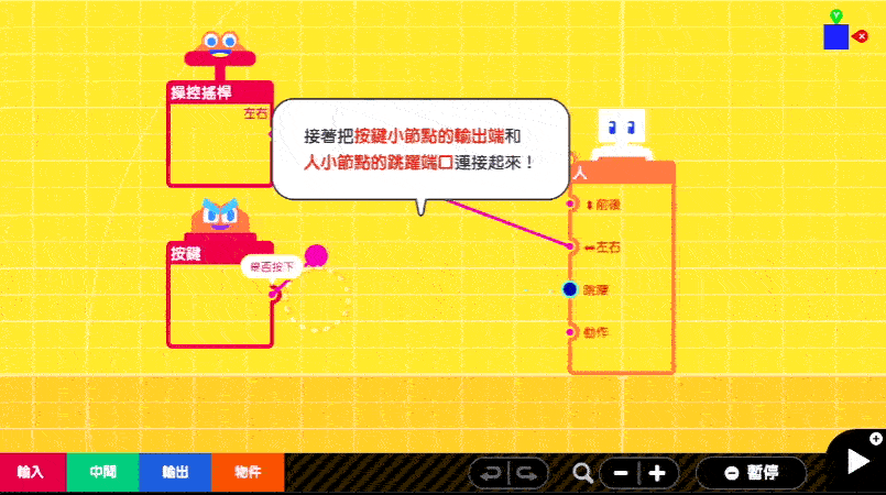 和健身環只會教簡單動作一樣,《編程設計》的玩法並不涉及難度較高的編程語言,而是通過“連線”的方式,把遊戲給開發出來。