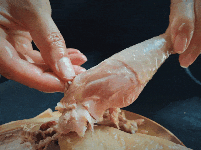 糟雞要用皮黃、肉嫩、骨頭裏還有血絲的上好白斬雞,用糟滷浸過,越發顯賣相飽滿、油色誘人,咬一口酒香充盈,最好糟滷裏順帶浸一點雞胗、雞爪、雞心之類的“什件”,一樣切片了下酒。