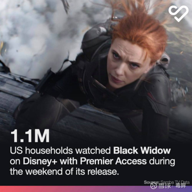 同時,由於美國每户家庭內平均為2.37人,通過成員聚會甚至密碼分享等方式,在Disney+上觀看《黑寡婦》的人數顯然更多。相比之下,在大銀幕觀看《黑寡婦》則需每個成年人都購票入場,這也變相稀釋了影片所能帶來的總收益。