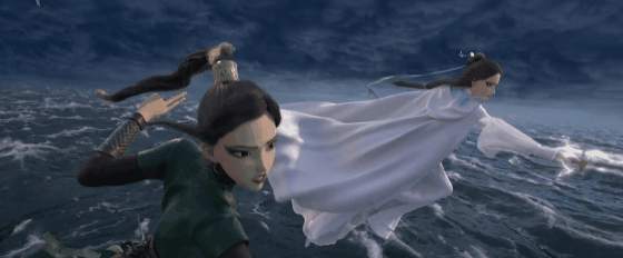 同時片中黑風洞那場戲與《白蛇:緣起》中傳統水墨風場景有所區別,黑風洞的整體風格不是寫實的,而是更具風格化,偏水彩風,營造出了一種流動感,在視覺呈現上是一個非常奇幻的空間。