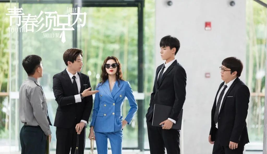 楊穎《創業時代》裏,西裝牛仔褲,罩了一層紗,喂,這是辦公室,不是T台。