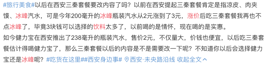 冰峯飲料系一家陝西本地的區域性老字號,是深入人心的三秦套餐(肉夾饃+涼皮+冰峯)中的重要一員,這點從招股書中可見一斑。
