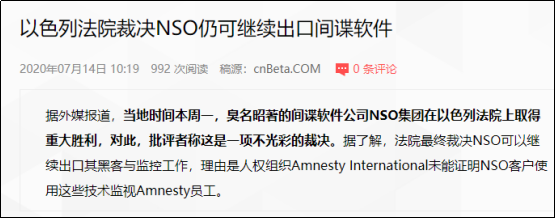 2018年,前面提到的“大赦國際”曾在以色列起訴了NSO,並試圖阻止其監視技術出口。