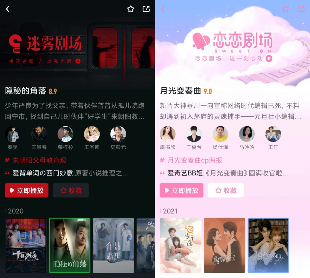相比之下,戀戀劇場和去年的迷霧劇場一致,堅持獨播劇策略,在幾個月內無縫接檔連播的形式,有利於形成良好的流量積累,對於品牌的積累也自然不同。