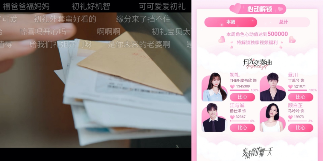 例如此前官方發起的“心動解鎖”活動,用年輕人喜歡的助力形式發佈獨家花絮,賦予觀眾“主人翁”式的參與感、獲得感,這類跨劇互動進一步加深了觀眾對戀戀劇場整體的品牌印象。