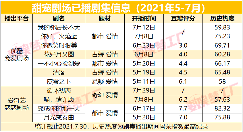 今年5月,愛奇藝面向年輕觀眾官宣了“100%全糖”的戀戀劇場,而去年上線的優酷寵愛劇場也在當月推出了新片單,甜寵劇升級為劇場化運營,成為“兵家必爭之地”。