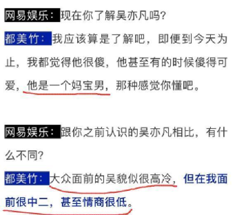 並且吳亦凡比戴威更像個孩子,甚至還不能離開母親,不能完全實現自理。