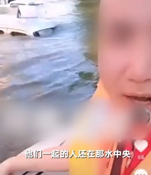而背後是幾乎淹沒了小汽車頂的積水。。。