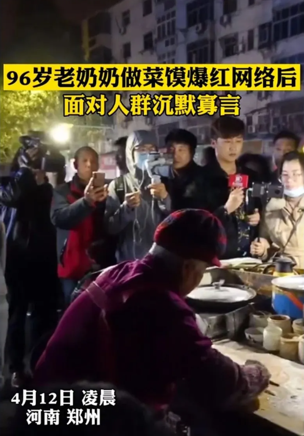 96 歲的老奶奶堅持通宵擺攤做煎餅 30 年,面對顧客鏡頭時説了一句 “ 人老了也應該有價值 ” ,這樣的充滿智慧的話語和事蹟本身打動了千萬網友。