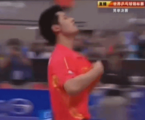 決勝局,馬龍贏下最後一分的瞬間,