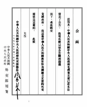 周恩來以他的外交部長名義所發的中華人民共和國第一份外交文件(圖片來源:人民網)