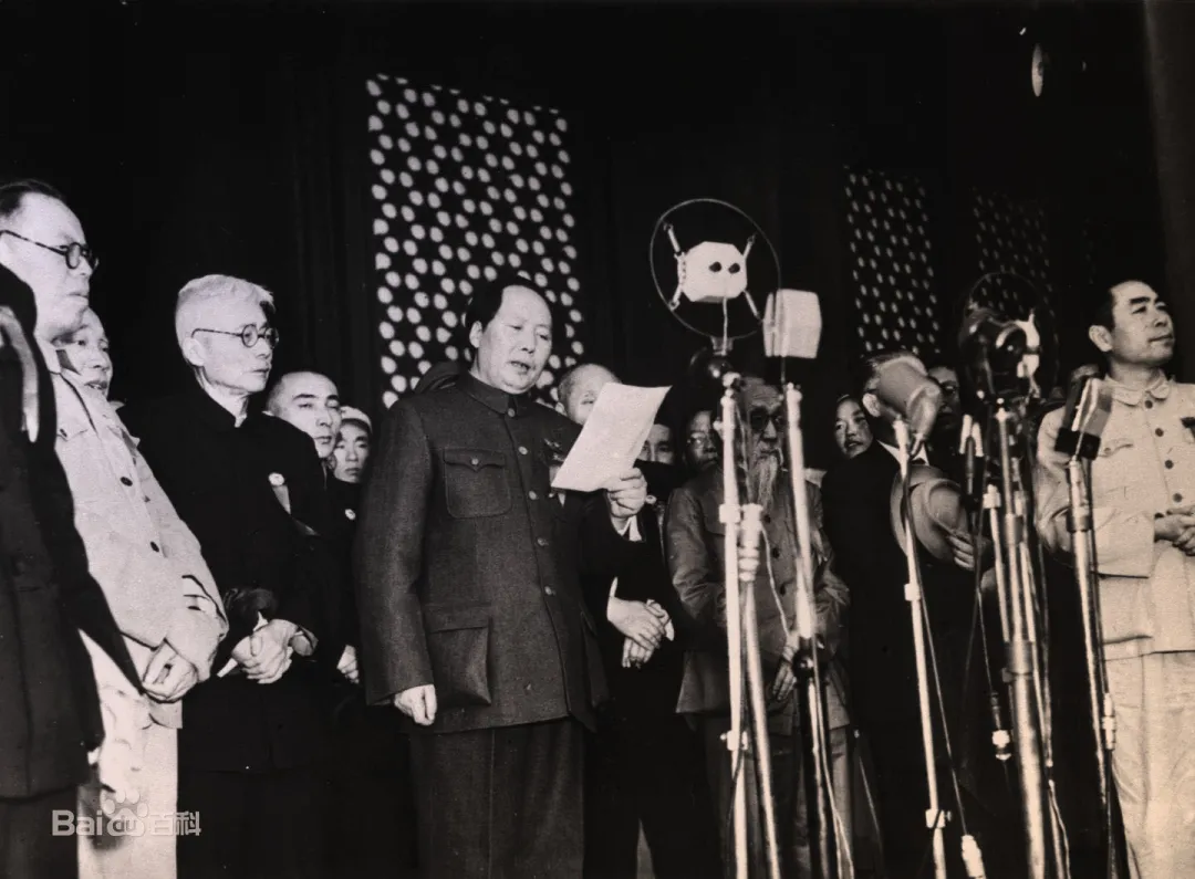 10月1日下午,父親和代表們登上天安門城樓參加中央人民政府成立大會暨開國大典。15:00儀式開始,毛澤東主席在北京天安門城樓上向世界、向全國人民宣告中華人民共和國、中央人民政府成立了,新中國就此誕生。《義勇軍進行曲》響起,第一面五星紅旗伴隨着不間斷的禮炮轟鳴在電動旗杆上徐徐上升。“共和國的首長們和我們這些來自全國各地的人民代表同全國人民一起,檢閲着英勇無雙的人民解放軍。中國人民能夠站在自己的閲兵台上,檢閲自己的部隊,這是有史以來的第一次。”