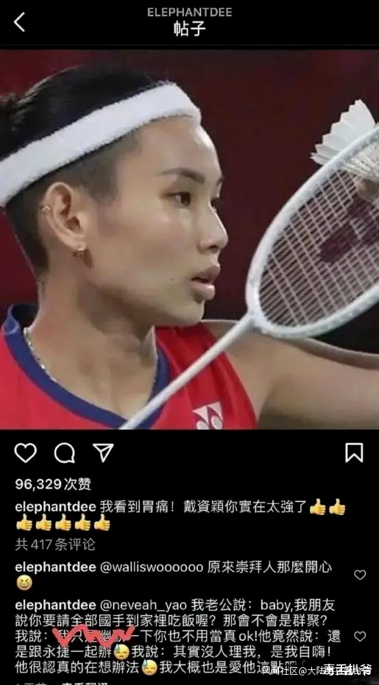 8月1日晚,東京奧運會羽毛球女單決賽,大陸羽毛球運動員陳雨菲奪金,中國台北運動員戴資穎獲得銀牌。小S觀看了這場比賽後,在個人社交平台Instagram發文稱:“雖敗猶榮,但我差點暴斃”,並配上了戴資穎的照片。