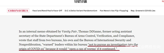 美國《名利場》雜誌今年6月更是髮長文披露,美政府內部早就警告,不要對新冠病毒的起源進行調查,否則可能打開“一個裝滿蛆蟲的罐子”。