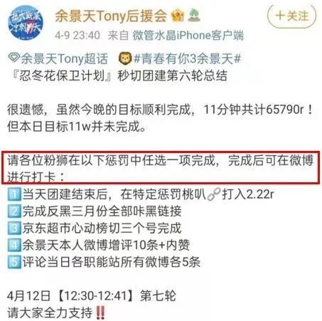 有時也會直接“搶錢”。一次,某偶像藝人的後援會表示:因為沒有達成集資目標,粉絲要在五項懲罰裏任選一項,其中一項是向特定賬户打款2.22元。