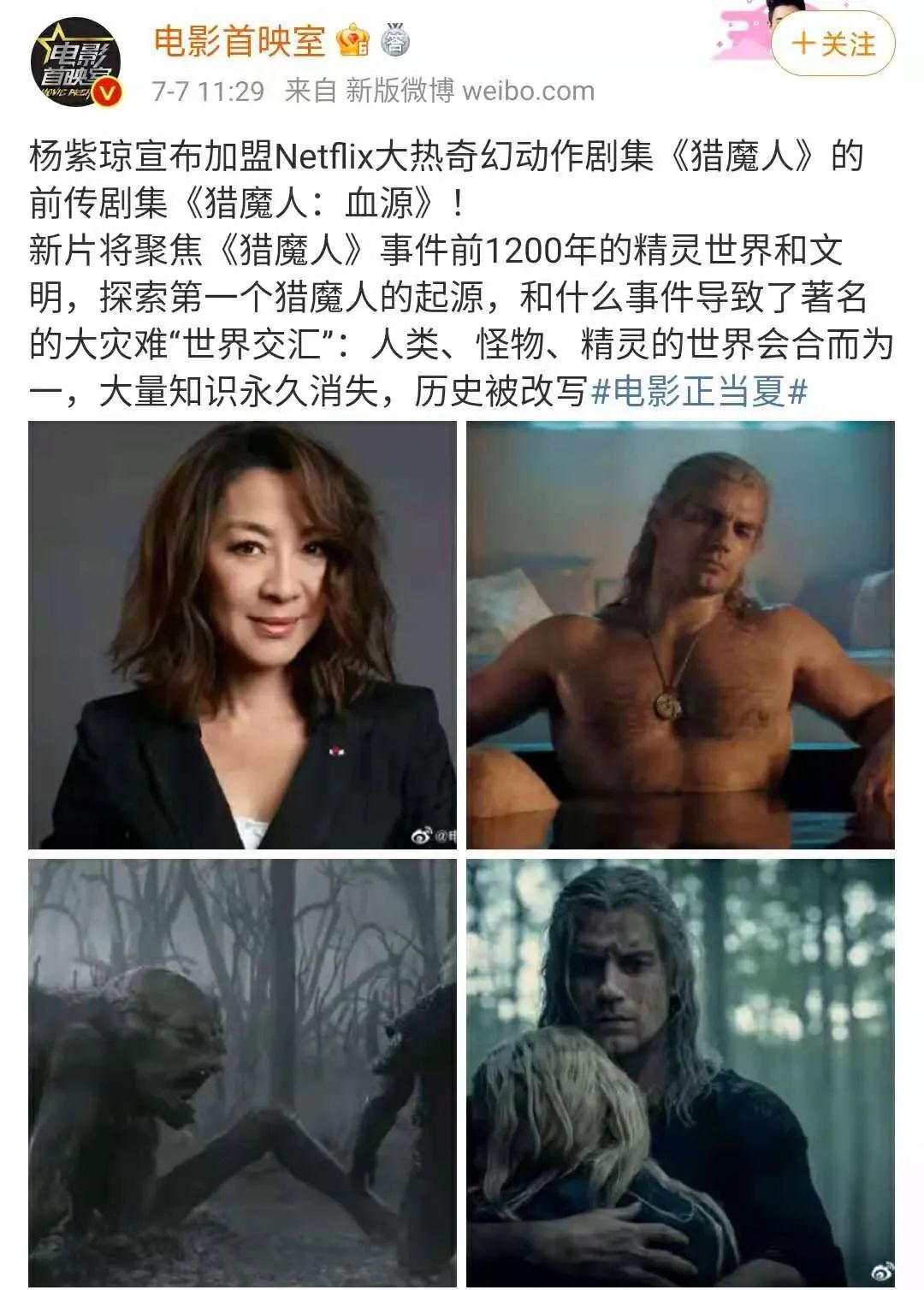 最近的一次笑話則發生在上個月,網上消息透露:楊紫瓊宣佈加盟美劇《獵魔人》。