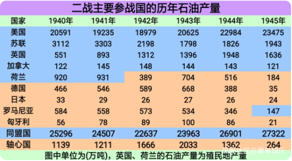 1石油禁運。德國石油產量只有500萬噸左右,其中大部分是質量不好的“煤化油”,而日本搞“煤化油”完全失敗,從1931年9.18到1937年7.7事變。日本主要靠進口美國石油支撐,1939年,80%的進口石油來源於美國,另外一部分來源於和屬東印度羣島。日本有一寸石油一寸血的説法。