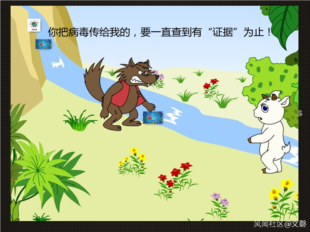 美國一再要將病毒溯源指向中國的行為,不由讓人想到伊索寓言“狼和小羊”故事:上游的狼,強詞奪理的責怪下游的羊弄髒了溪水,而要吃掉羊。——在這個故事中的“狼”的心裏,那裏有什麼道理?有什麼合理的邏輯?只有強權!只有“欲加之罪,何患無辭”!其實就是:我是強大的狼,想吃你羊,可以強詞奪理,説你“弄髒了水”,不過只是找個不成理由的理由、説辭而已!