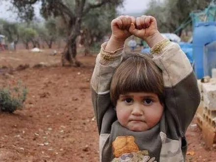 誤把記者的鏡頭當成長槍,敍利亞小孩熟練地舉手投降,臉上寫滿了恐懼和委屈。