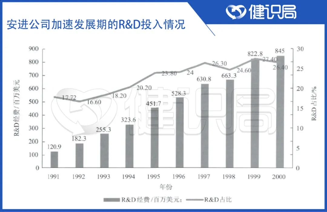整個九十年代,安進賺得越來越多,研發投入也持續加碼。2000年,安進成為世界500強,在藥企中排名第21位。