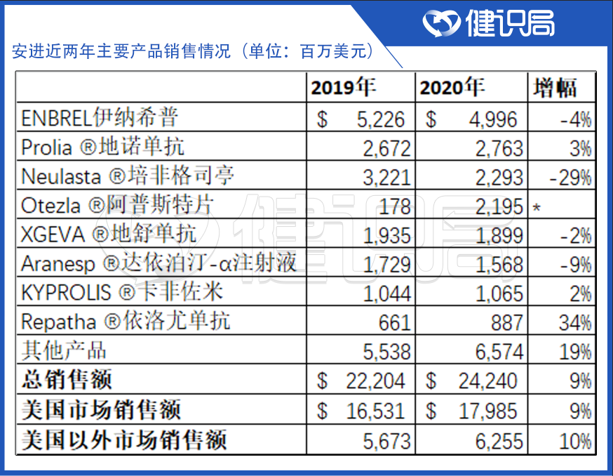 安進近兩年主要產品銷售情況(單位:百萬美元)