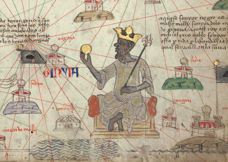 馬裏國家的統治者曼薩·穆薩曾於14世紀20年代前往西亞朝聖,他一路揮灑黃金,在埃及和西亞引發震動。約半個世紀後,肩擱權杖、手舉金球的曼薩·穆薩形象出現在歐洲人的地圖上。在隨後的數百年裏,這個形象慢慢地演變成歐洲人心目中的西非內陸“黃金國”的象徵,併成為激發19世紀歐洲人前往西非探險和擴張的一個動因。