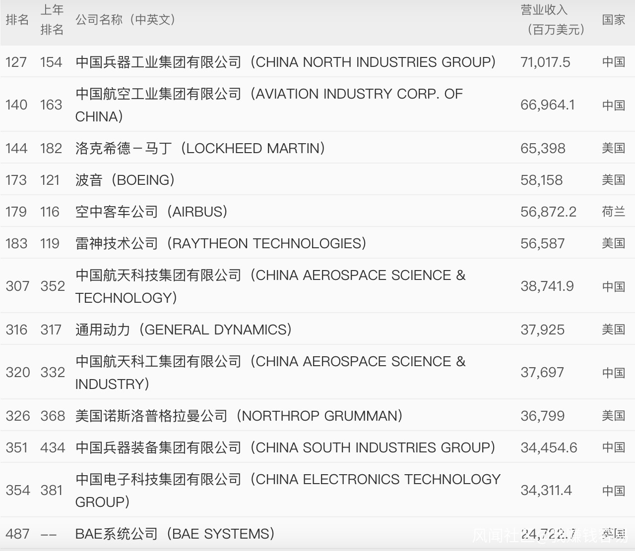 最新公佈的世界軍工企業排名,榜首位置首次出現中國企業_風聞
