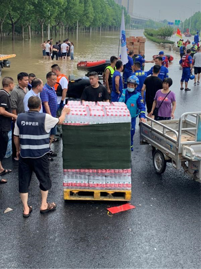 幾天下來,他們為鄭州7個受困嚴重的小區,送去上萬件救援物資。