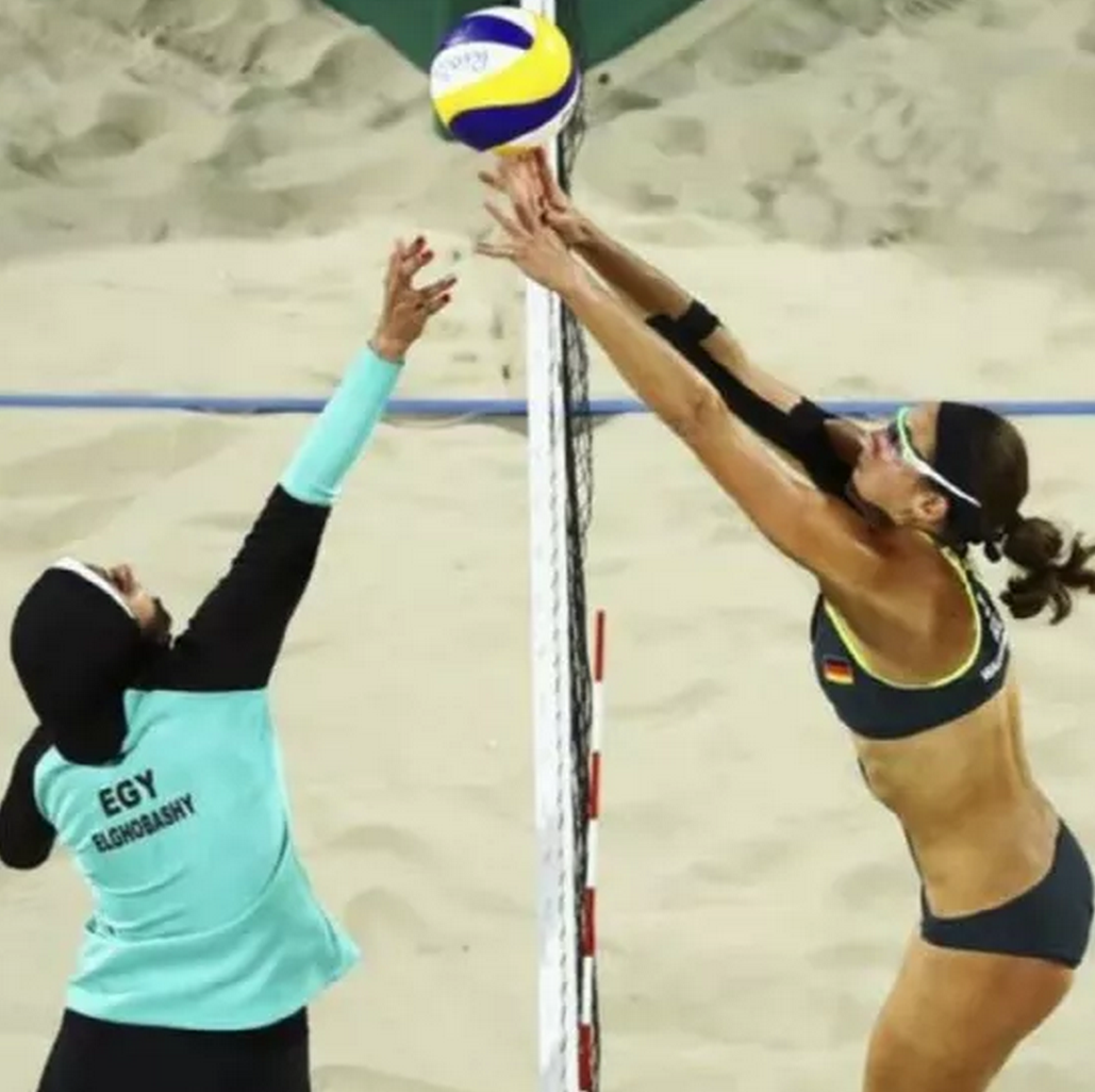 2016年裏約奧運會有一幕非常諷刺的場景,女子沙灘排球賽上,埃及對德國。