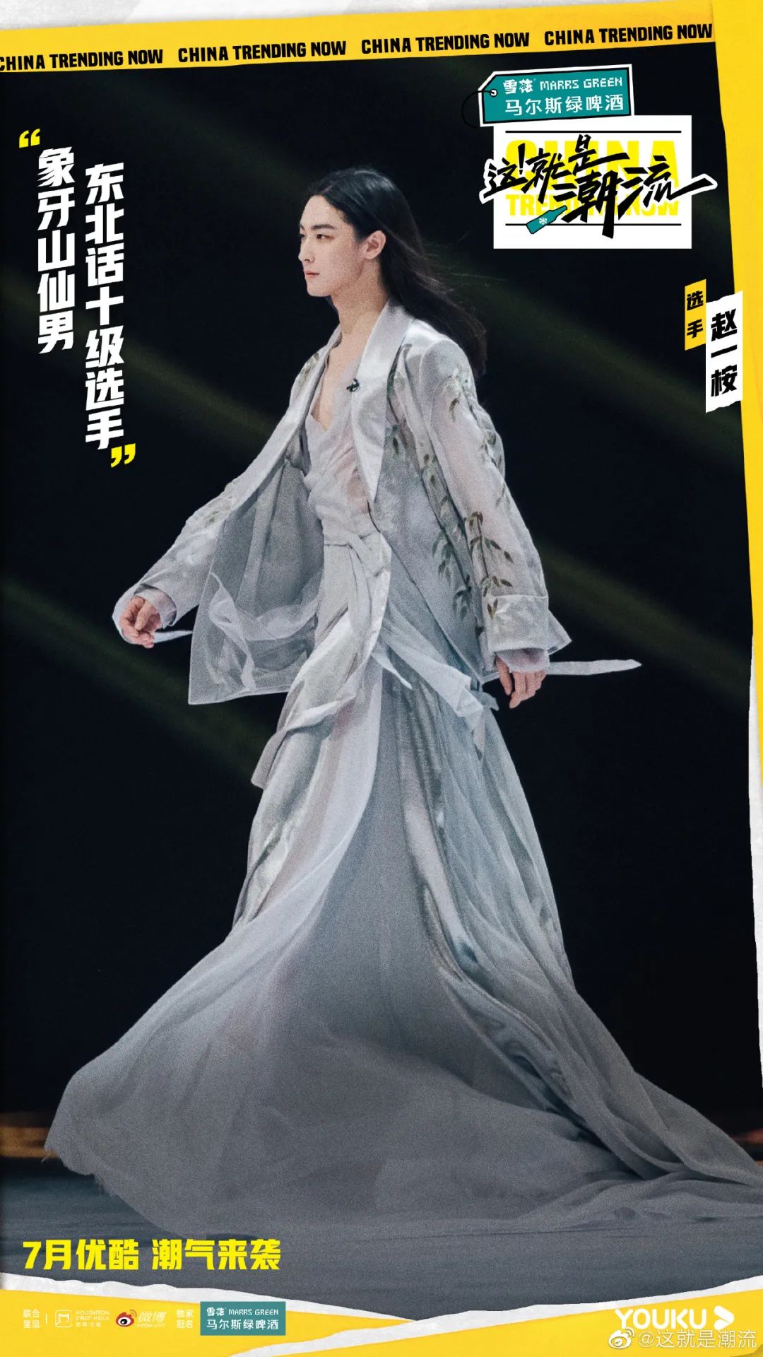 身高182的趙一桉,長着一張乾淨清秀的臉,再加上模特出身,本身就很適合國風裝扮。在《這!就是潮流》中首次亮相,身着漢服出場的他很快便有了“國風美少年”的稱號。